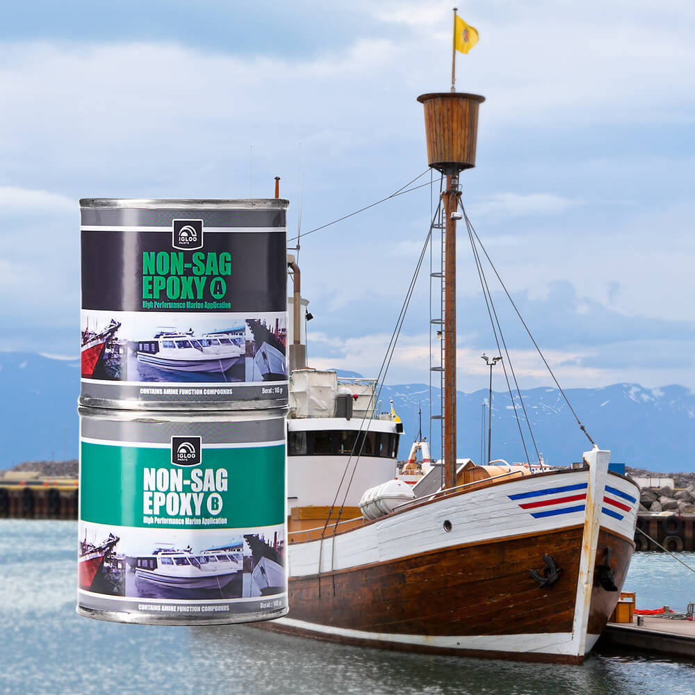 Iglo Non-Sag Epoxy adalah lem epoxy 2 komponen yang mengandung filler sehingga dapat digunakan sebagai dempul. Produk ini diformulasikan khusus untuk perbaikan kapal kayu maupun besi. Iglo Non-Sag Epoxy sangat sesuai untuk digunakan sebagai perekat untuk menutup retakan atau kerusakan, baik dalam keadaan lembab maupun basah.